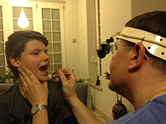 - 2 Badanie techniką endoskopową : III migdałek, krtań, uszy, gardło, nos